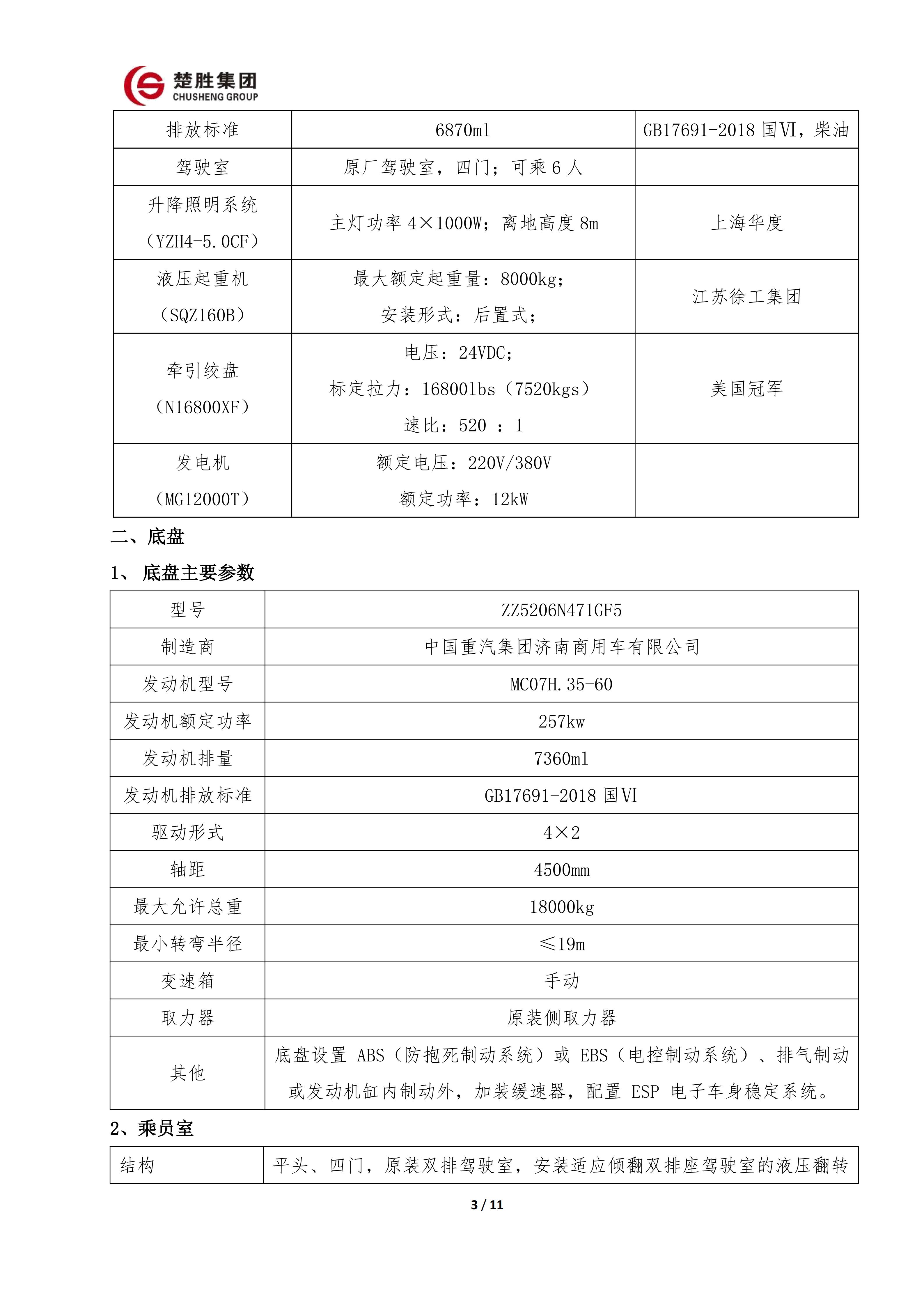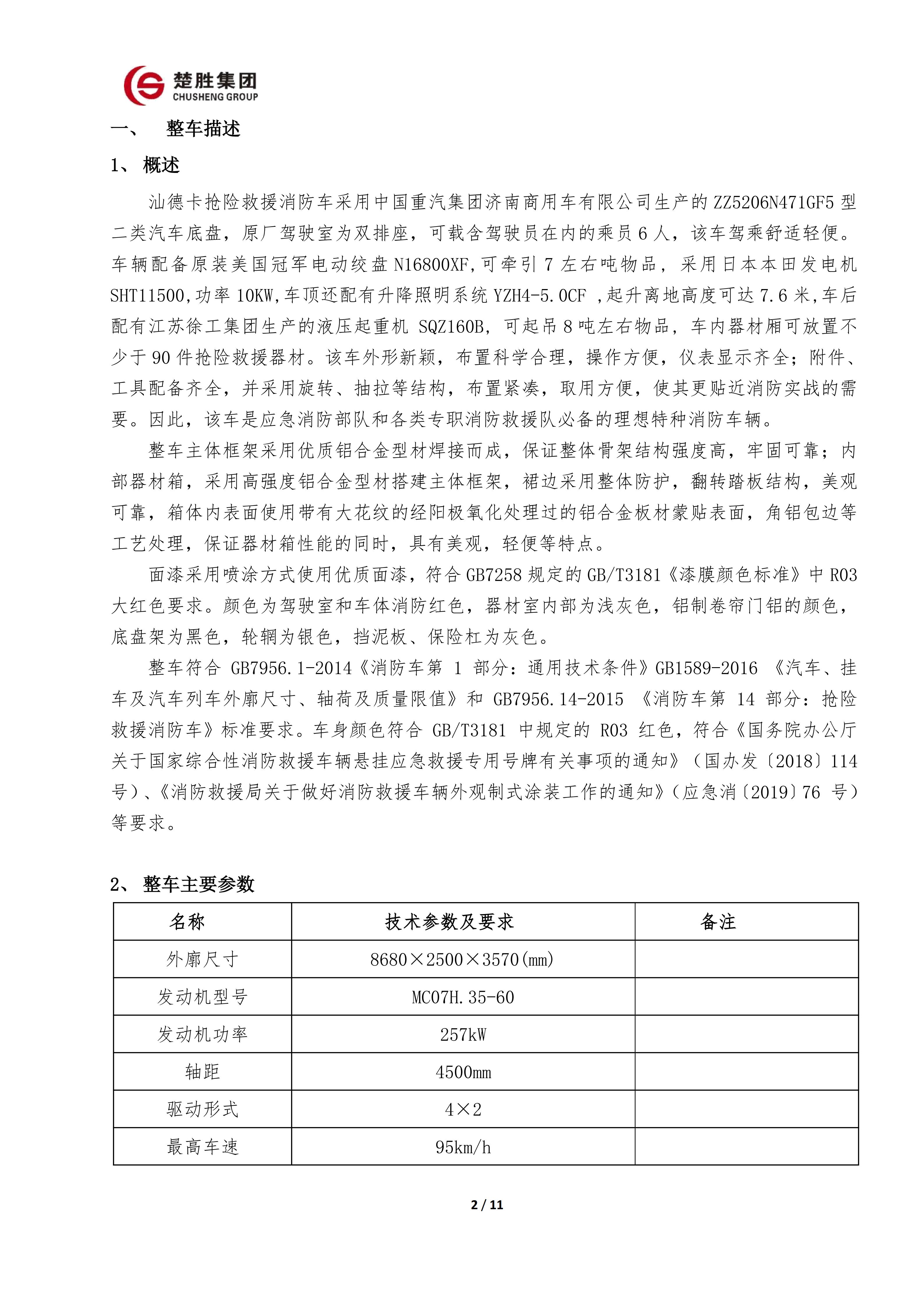 楚勝 CSC5140TXFJY90/S6型搶險救援消防車
